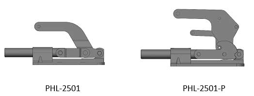 Certain WOLVERIENE and KNU-VISE clamps are available with our Positive Lock (-P) feature. This is a secondary mechanism that locks that clamp in the open or closed position and requires activation of a separate lever before the clamp can be moved from that position. This system is used in applications where it’s likely the clamps could be accidentally operated or where the clamp is exposed to repeated or extreme shock or vibration that might cause the toggle lock mechanism to spring open.
